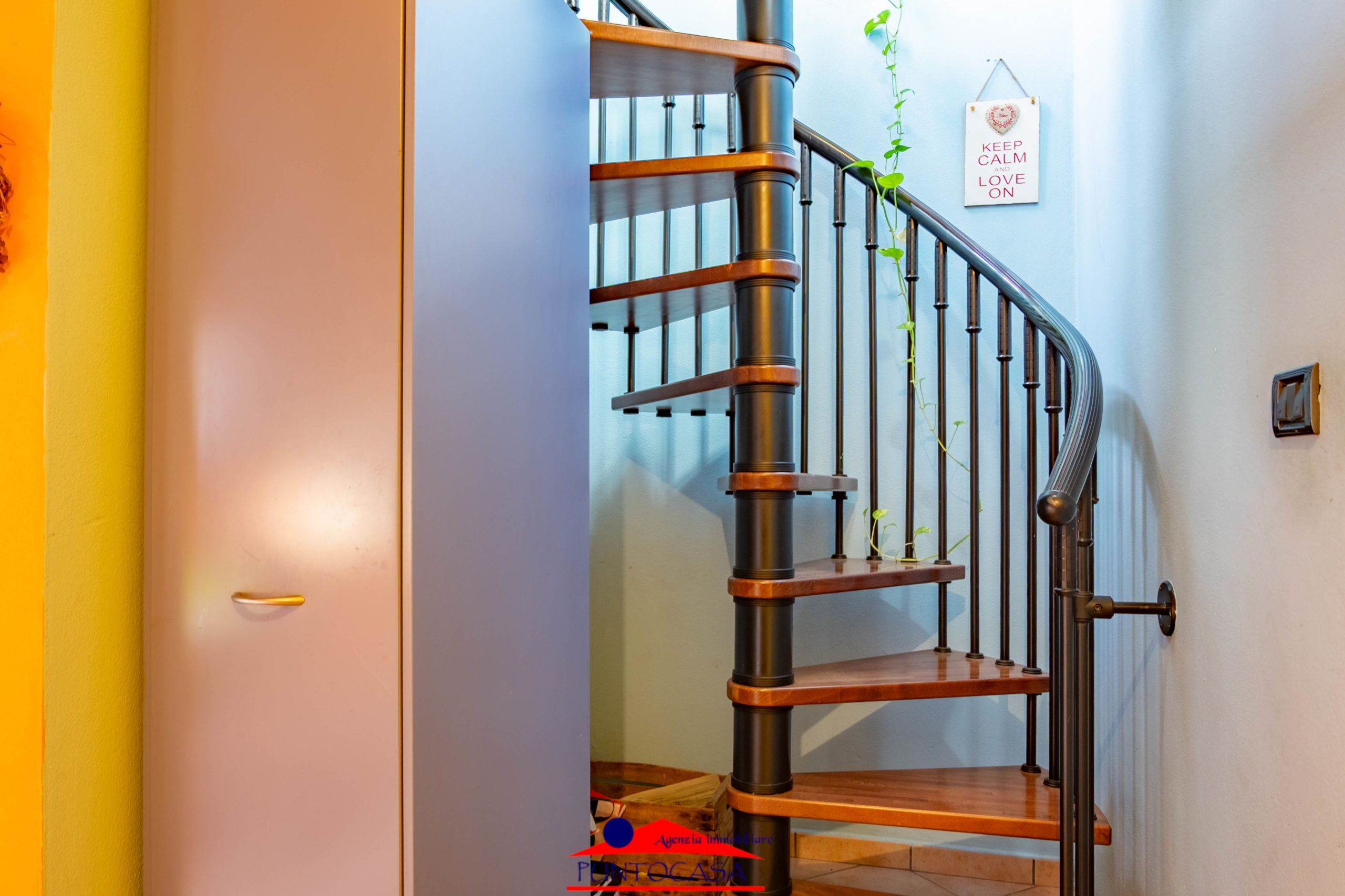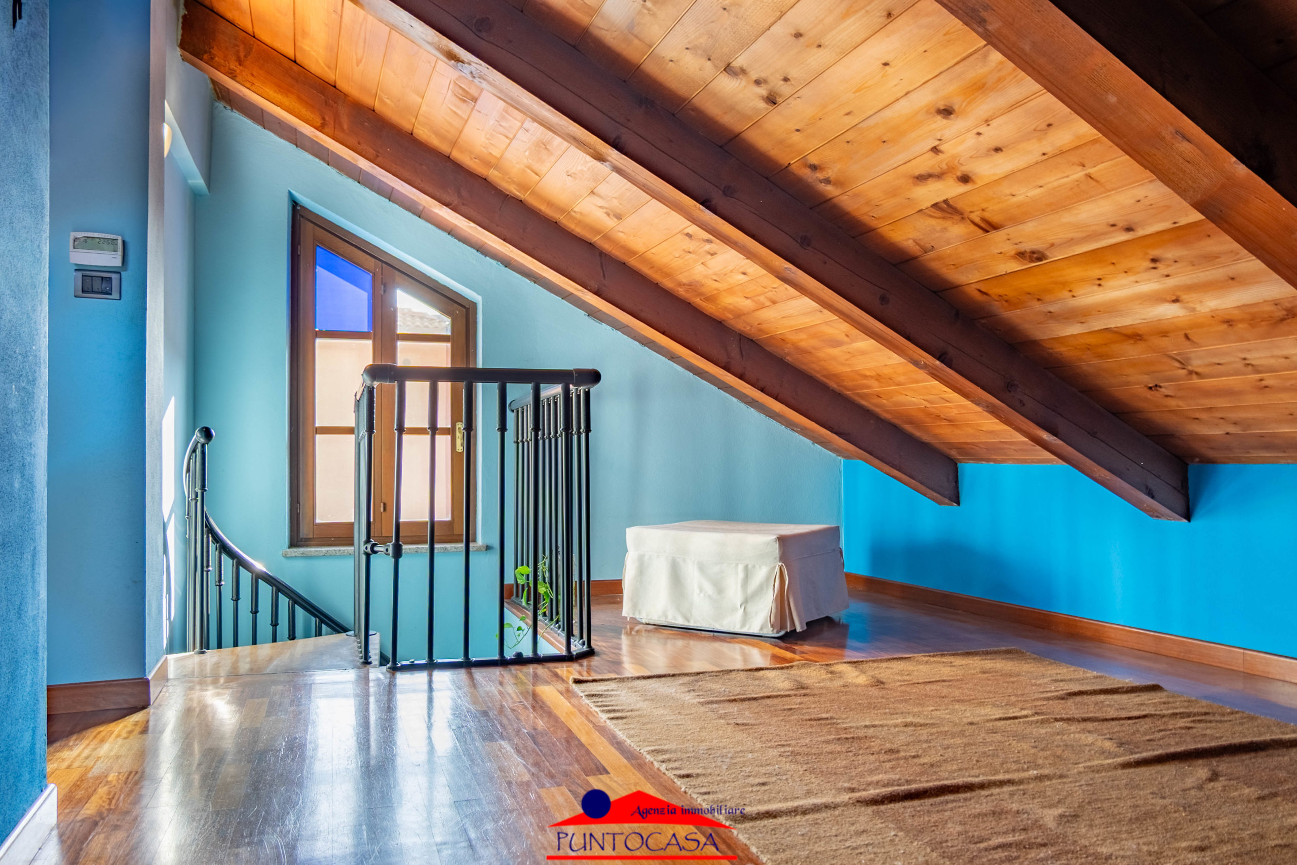 Una scala a chiocciola conduce al piano superiore, dove si apre una zona versatile composta da due locali pluriuso (ideali come studio, stanza ospiti o spazi hobby) e un secondo bagno.